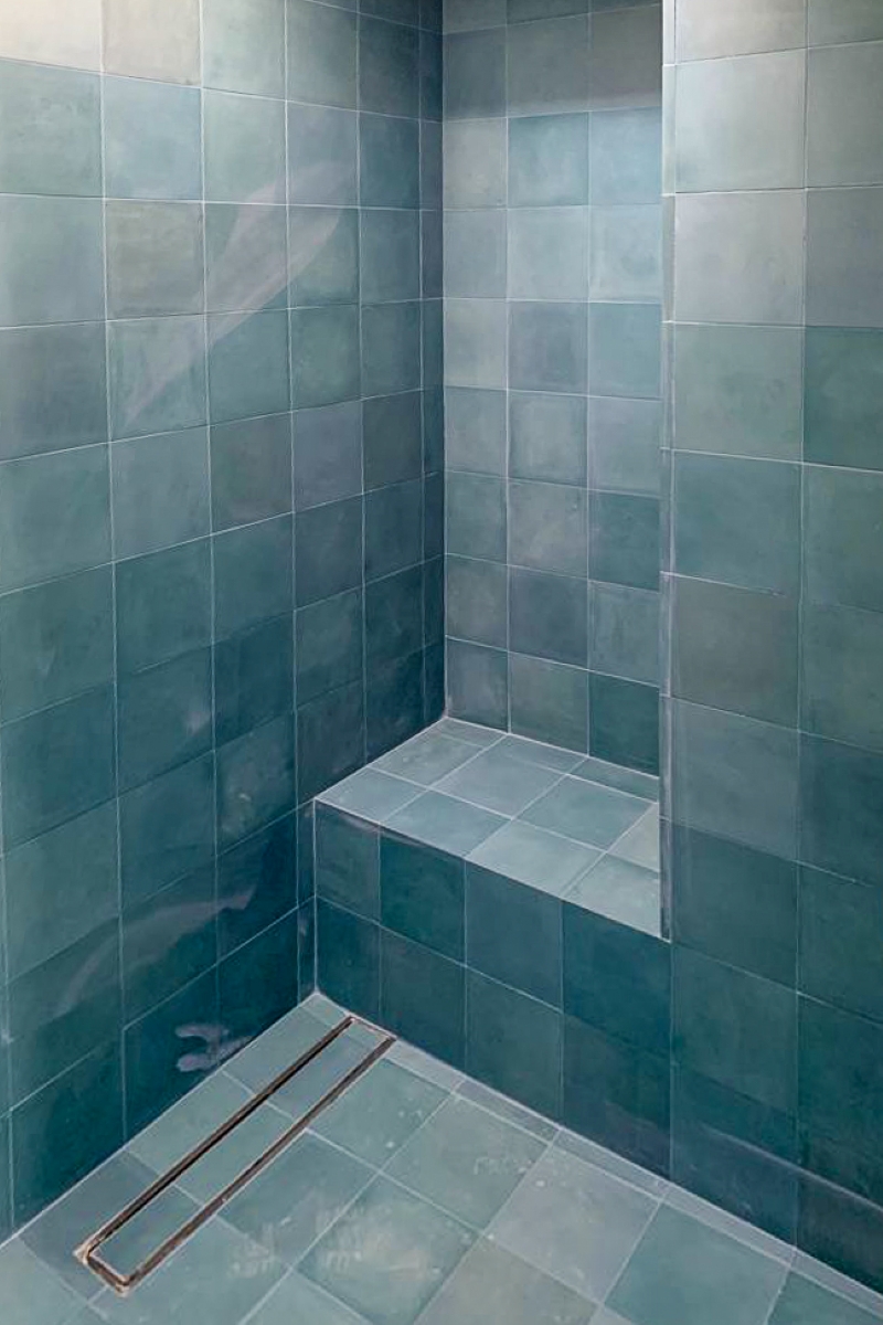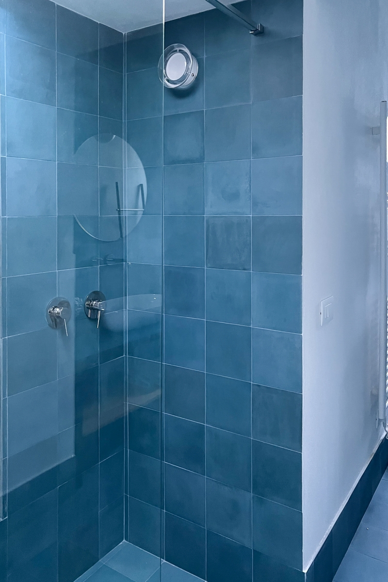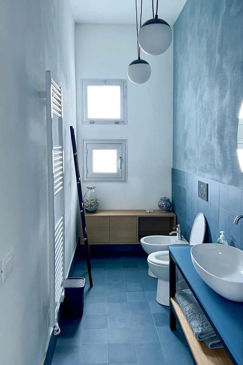 I materiali usati sono rivestimenti dai colori che ricordano la terra e il contesto: il color cotto, i verdi , il blu. Colori presenti nel paesaggio circostante , che caratterizzano la casa in modo molto naturale.