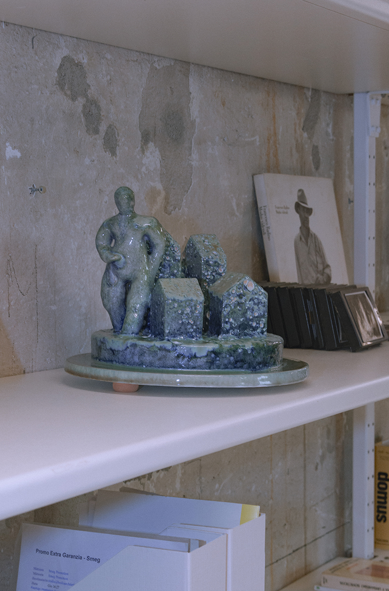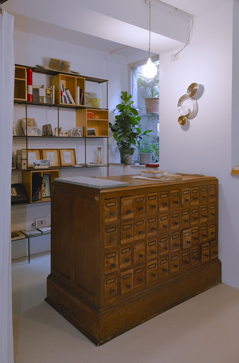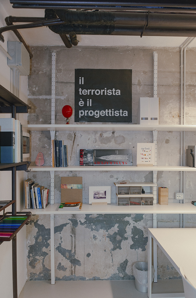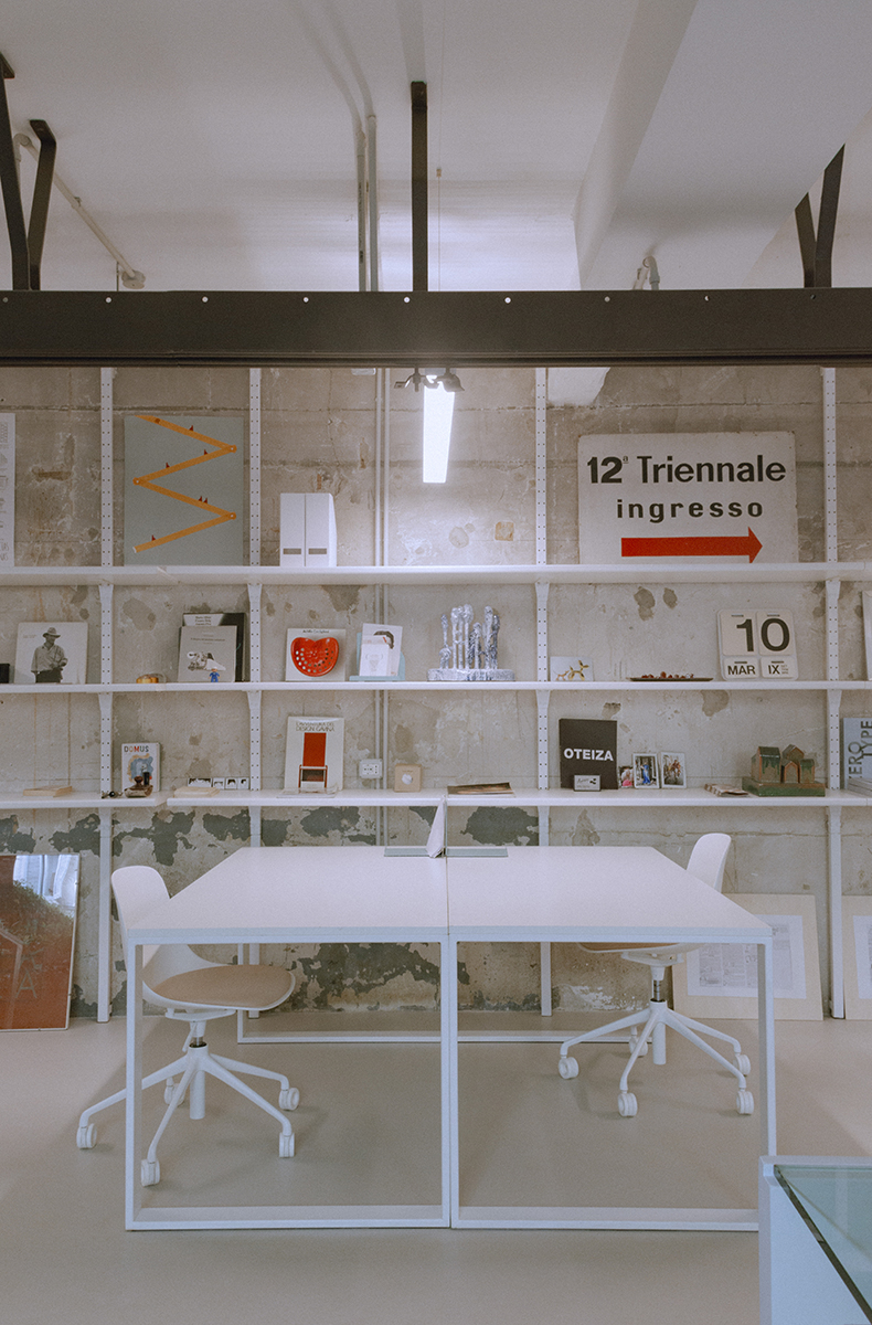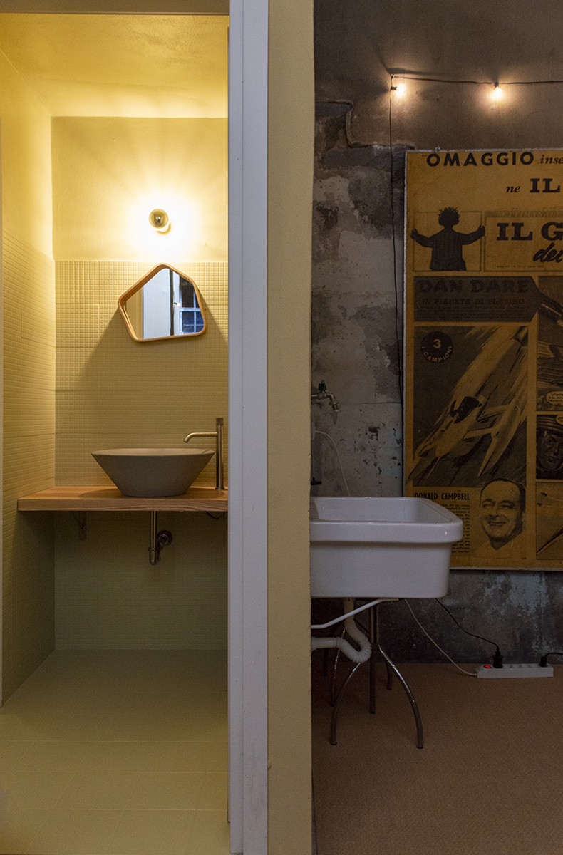Lo studio ci rappresenta, è uno scrigno ricco di materiali raccolti e classificati, fonte preziosa per il nostro approcio al lavoro, in cui tutto viene immaginato e proposto al cliente con campioni reali. Lo spazio è poi costituito da una zona meeting ma, allo stesso tempo, la cucina delle chiacchiere, le cene, gli aperitivi, la materioteca e la sala da bagno. Ci sono poi gli spazi aperti di pertinenza, con le piante che ci accompagnano e rendono lo spazio più piacevole e godibile. Molti oggetti presenti in studio sono registro del lavoro svolto in tanti anni di professione, oggetti trovati o recuperati da cantieri e ripensati, dando loro nuova funzione, ma lasciando registro di un momento passato.