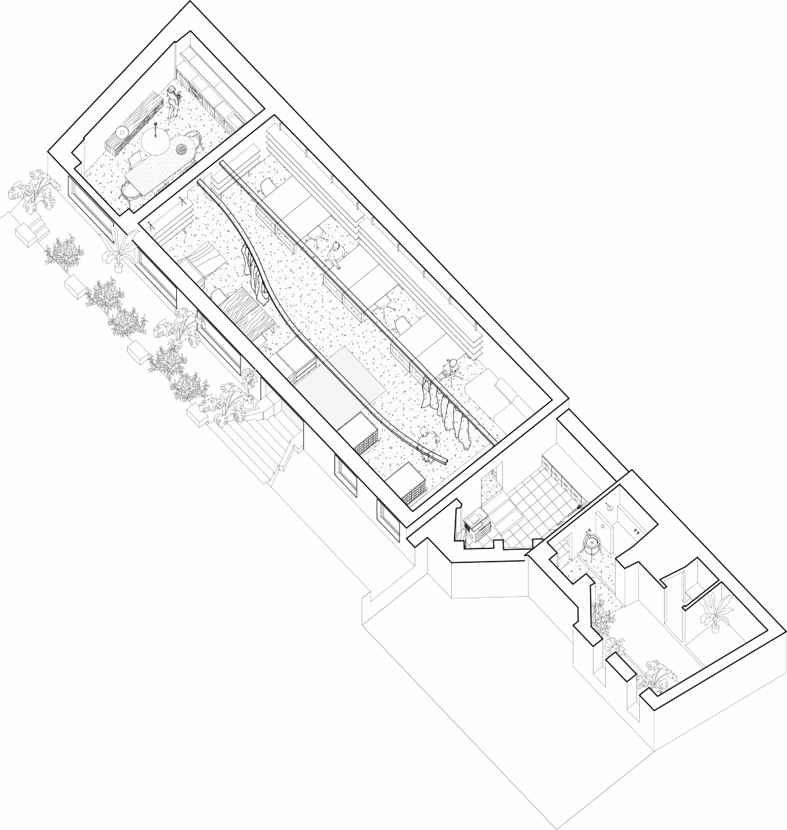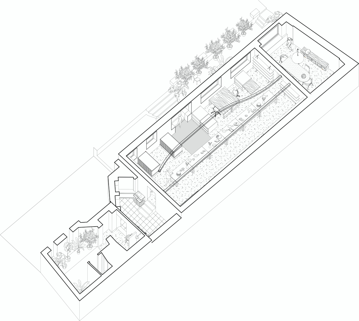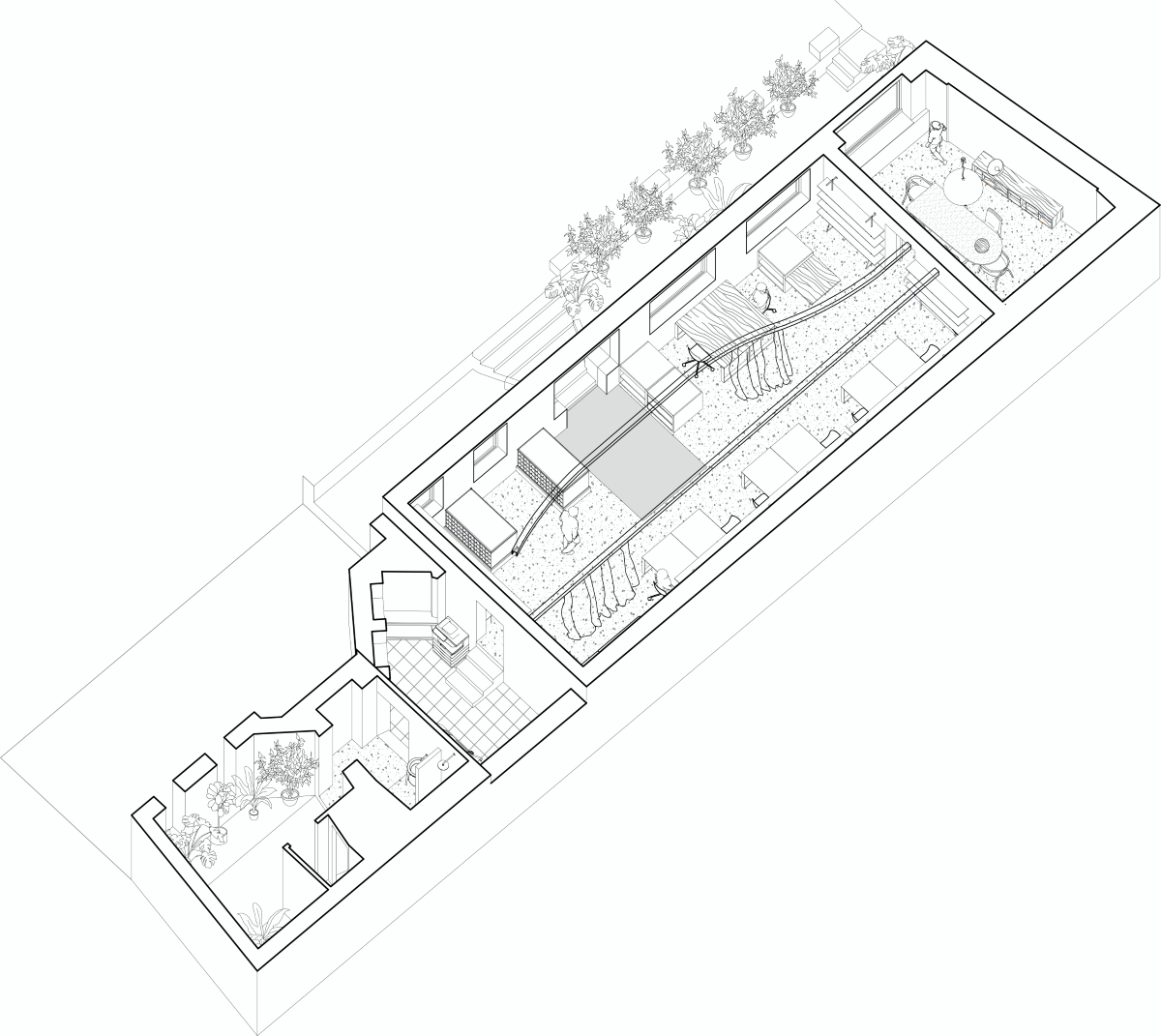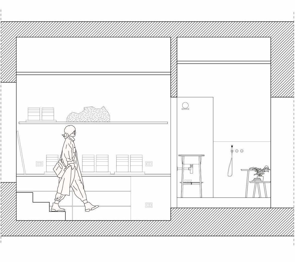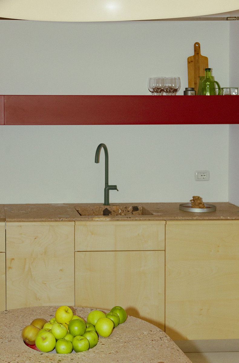 Lo studio ci rappresenta, è uno scrigno ricco di materiali raccolti e classificati, fonte preziosa per il nostro approcio al lavoro, in cui tutto viene immaginato e proposto al cliente con campioni reali. Lo spazio è poi costituito da una zona meeting ma, allo stesso tempo, la cucina delle chiacchiere, le cene, gli aperitivi, la materioteca e la sala da bagno. Ci sono poi gli spazi aperti di pertinenza, con le piante che ci accompagnano e rendono lo spazio più piacevole e godibile. Molti oggetti presenti in studio sono registro del lavoro svolto in tanti anni di professione, oggetti trovati o recuperati da cantieri e ripensati, dando loro nuova funzione, ma lasciando registro di un momento passato.