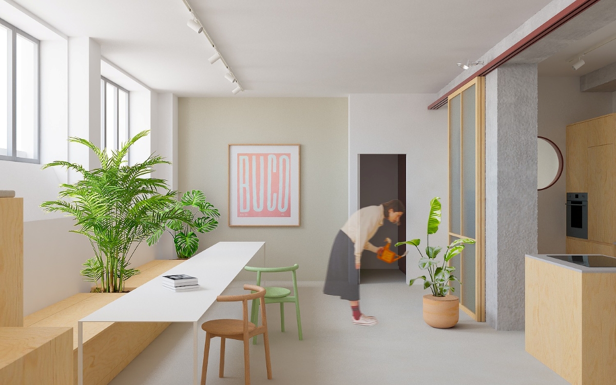 Progetto a Milano di conversione di laboratorio di un tappezziere  in residenza.