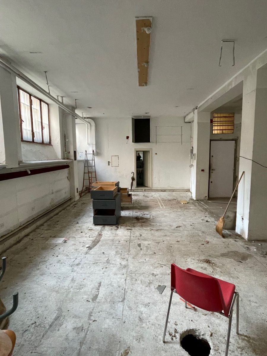 Piano semi-interrato con doppio affaccio, con amplie vetrate verso il cortile interno e la strada.